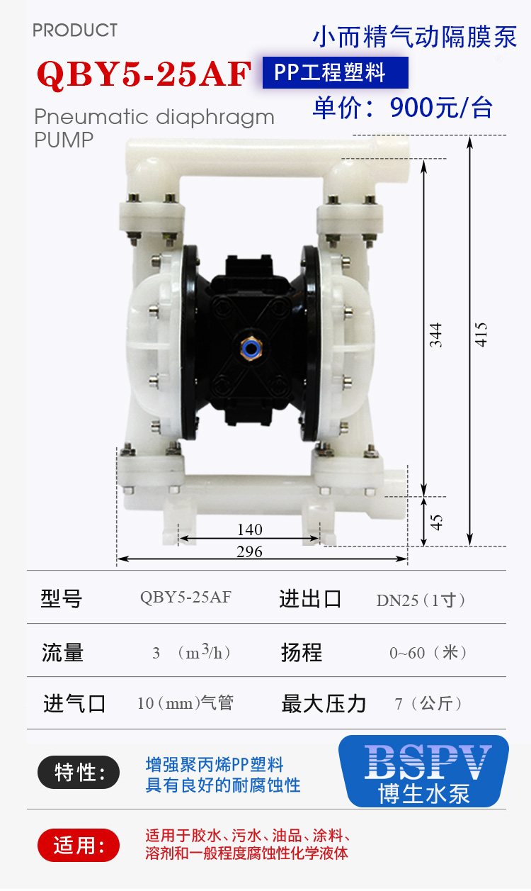 QBY5-25AF型精小型塑料氣動隔膜泵